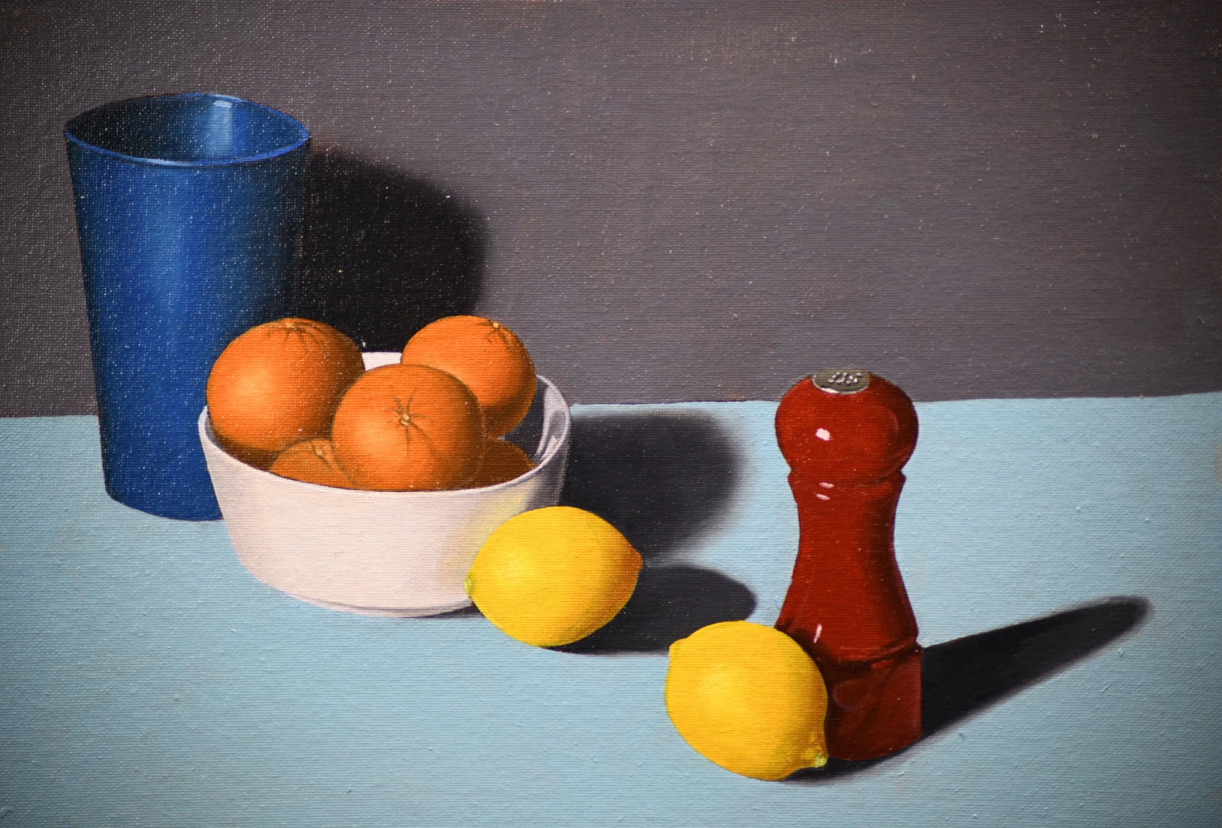 Title:Orange and Lemon Study Description:Oil on Canvas 11”’x14” Category: Still-life Painting