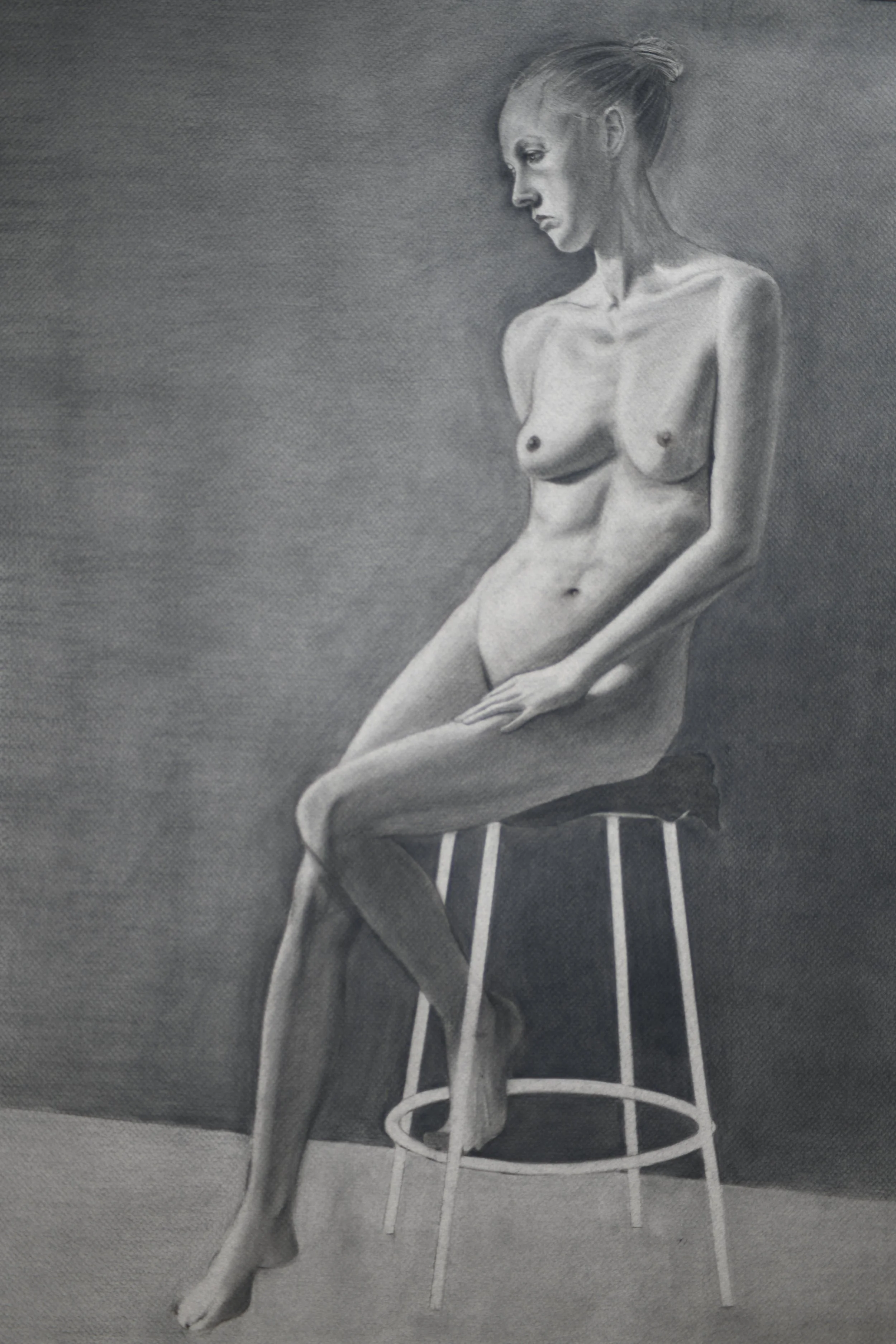Title:Female Figure study Description:Charcoal on Grey Paper 18”x 24” Category:Drawing